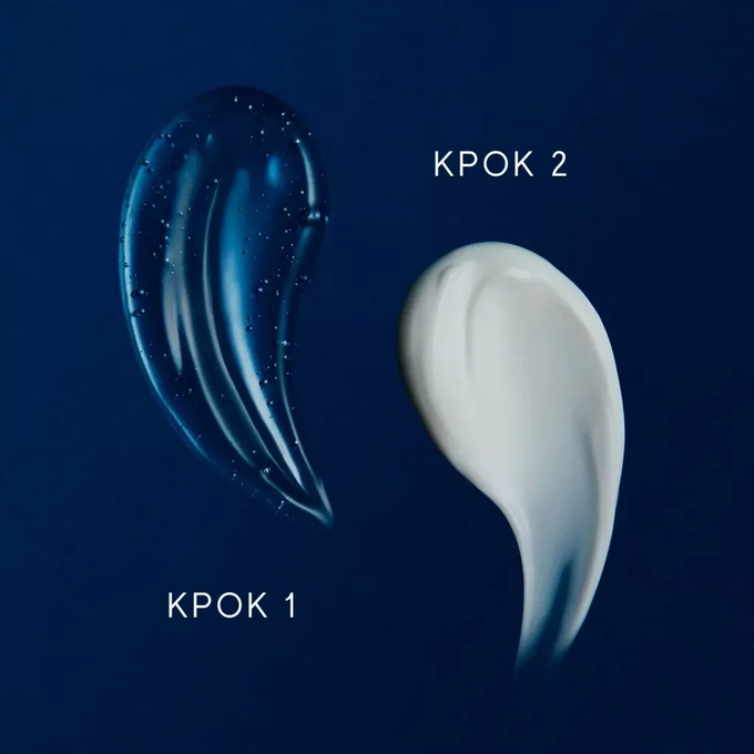 Зачекати кілька хвилин до поглинання, потім так само нанести білий крем Step 2 H.E.O. Mask. Залишити на всю ніч.