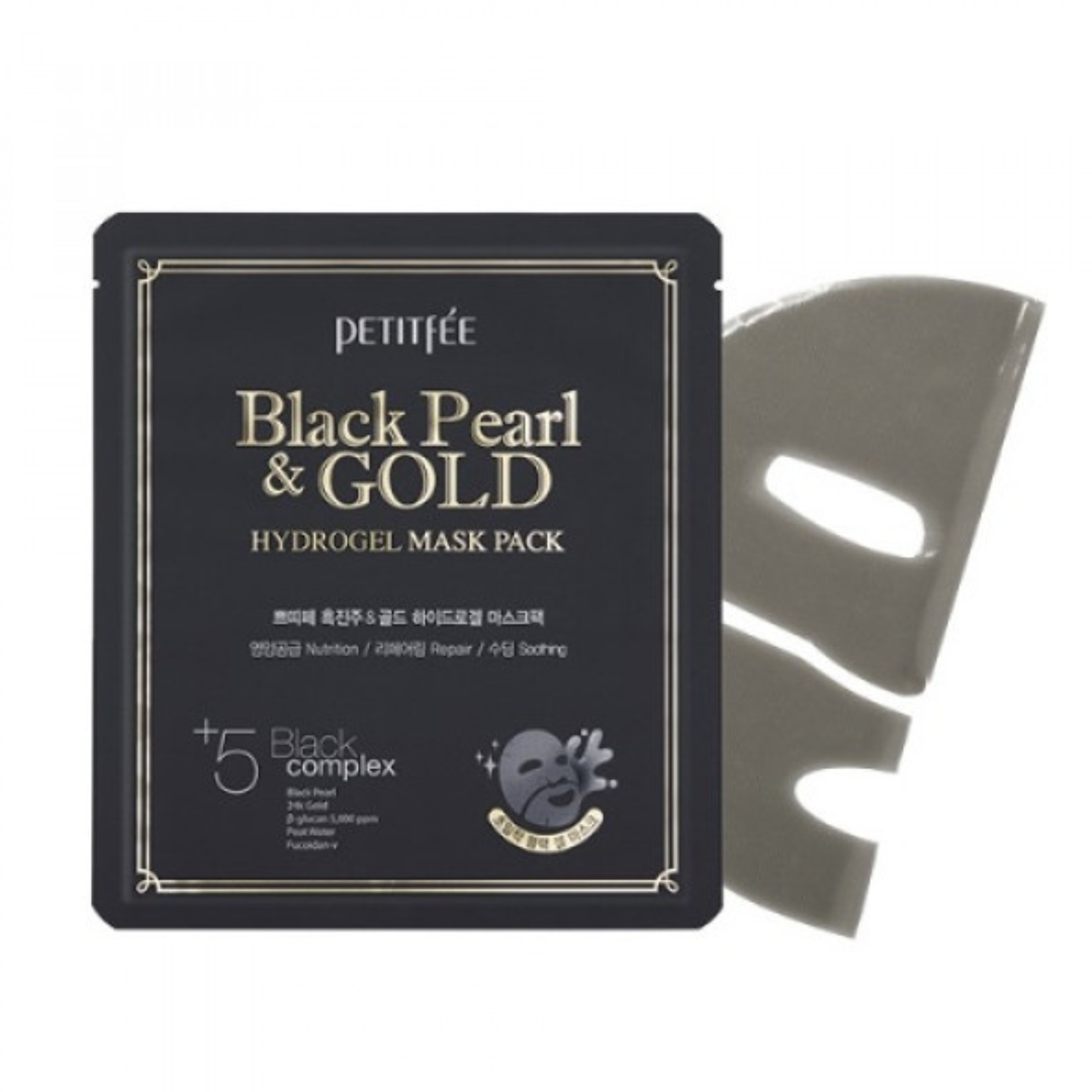 Гідрогелева маска для обличчя Black Pearl & Gold Hydrogel Mask Pack з порошком чорних перлів та золотом збагачена натуральними інгредієнтами, що інтенсивно зволожують і відновлюють шкіру. Маска містить аморфофаллус маннан, що утворює матрицю на шкірі для збереження вологи, покращуючи регенерацію. Колаген і аденозин допомагають в омолодженні та ліфтингу шкіри, а екстракти камелії, троянди, алое та інших рослин мають антисептичні, протизапальні та антиоксидантні властивості.