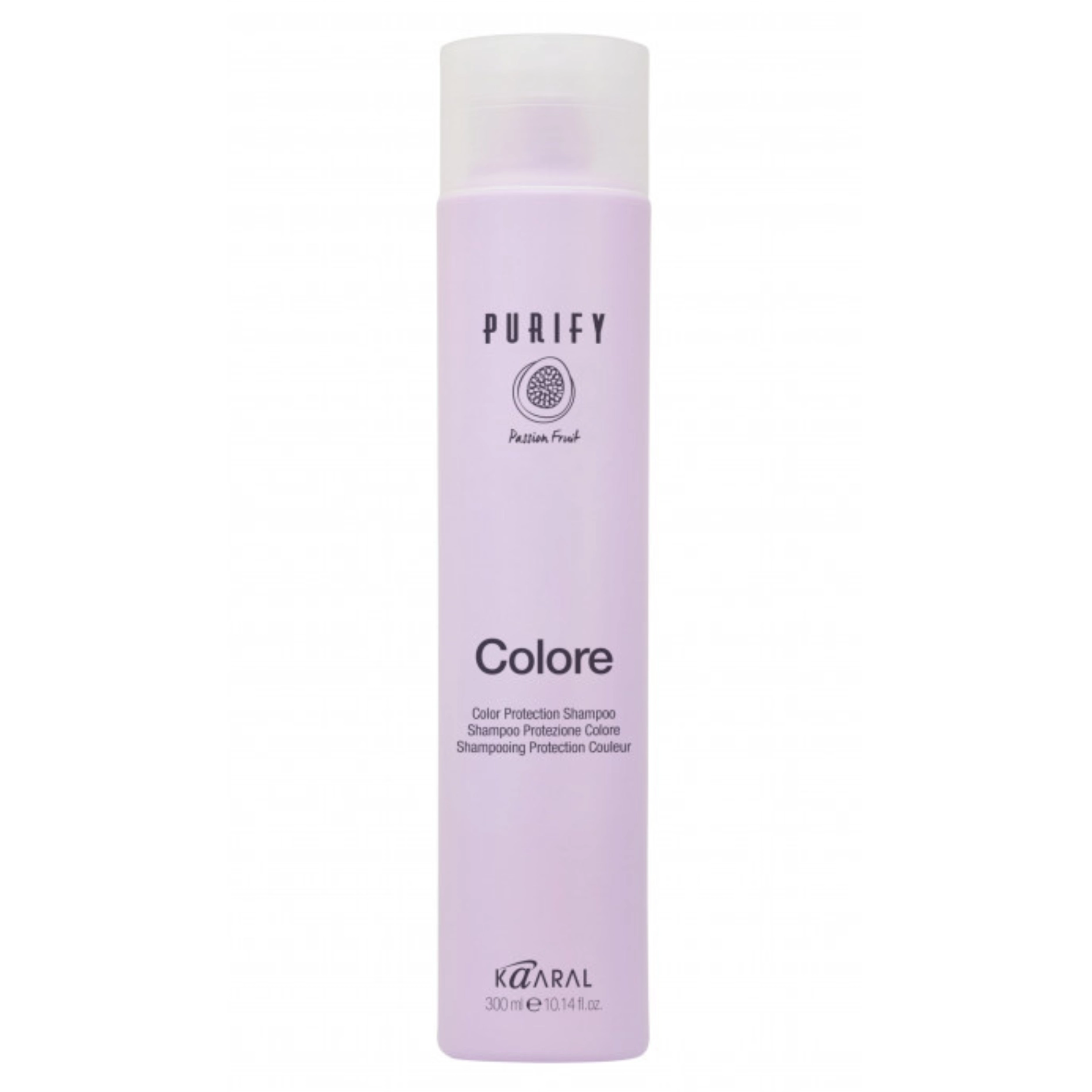 Зберегти яскравий і сяючий блиск волосся — легко, використовуючи комплексний догляд із спеціальної серії «Захист кольору» від бренду Kaaral. Шампунь Purify Color має збалансований рівень рН, а також поживну формулу на основі цінних масел і екстракту насіння маракуї, покращує загальний стан волосся, наповнює його енергією від коренів до самих кінчиків і захищає від втрати кольору. Отримуйте максимум задоволення від розкішного догляду з Kaaral!