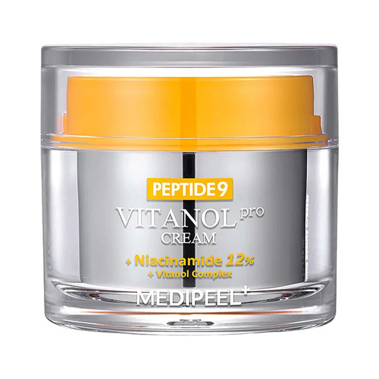 Ліфтинг-крем Medi-Peel Peptide 9 Vitanol PRO Cream - це потужний антивіковий засіб, який бореться з пігментацією, зморшками та знижує глибину заломів. Крем забезпечує одночасно освітлювальний та омолоджуючий ефекти, дарує шкірі пружність, еластичність і здорове сяйво.