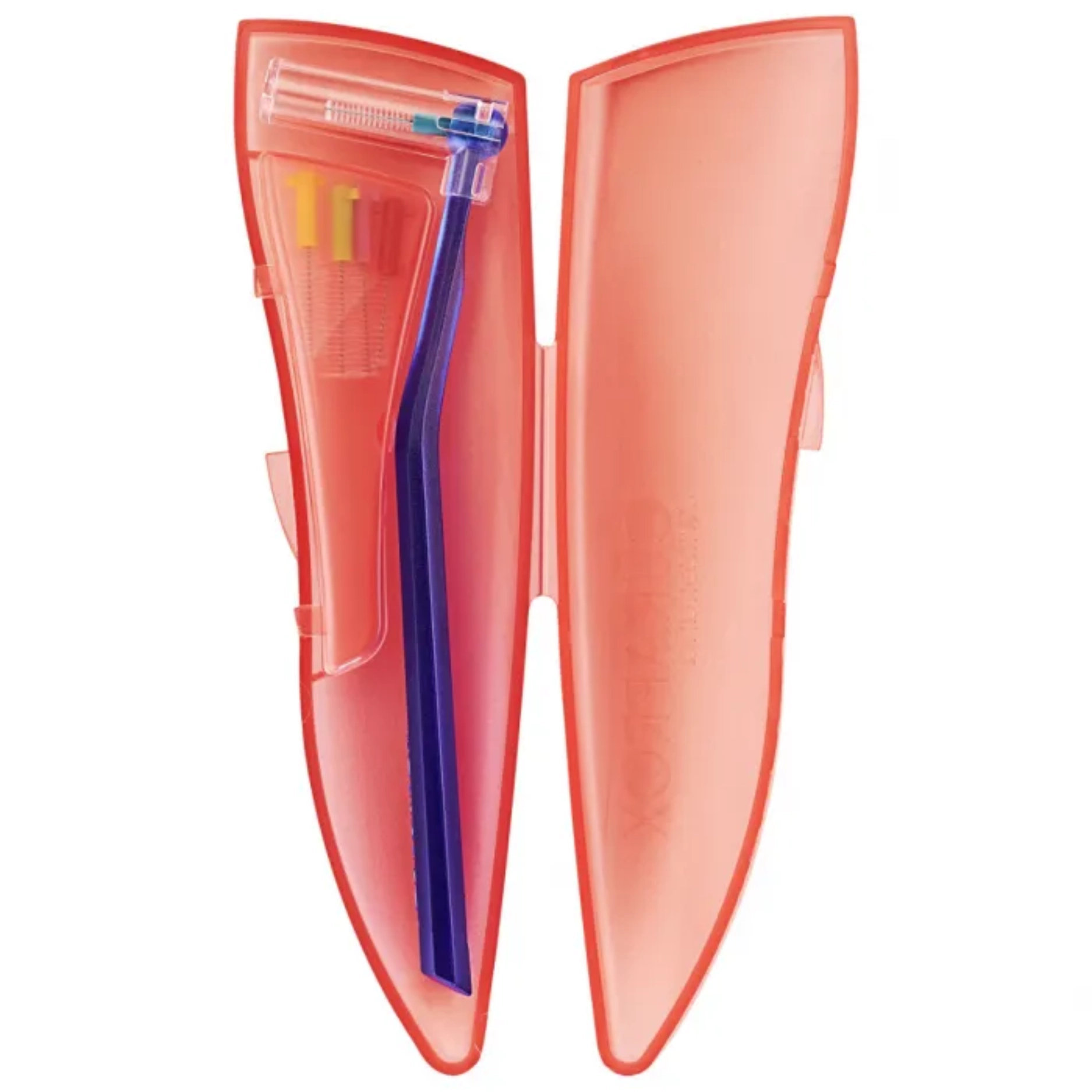 Стильна практична коробка для зберігання. Поставляється з тримачем UHS 470 і всіма міжзубними йоржиками CPS prime - їх легко встановити на місце зберігання. Набір ідеальний як вдома так і в дорозі.
