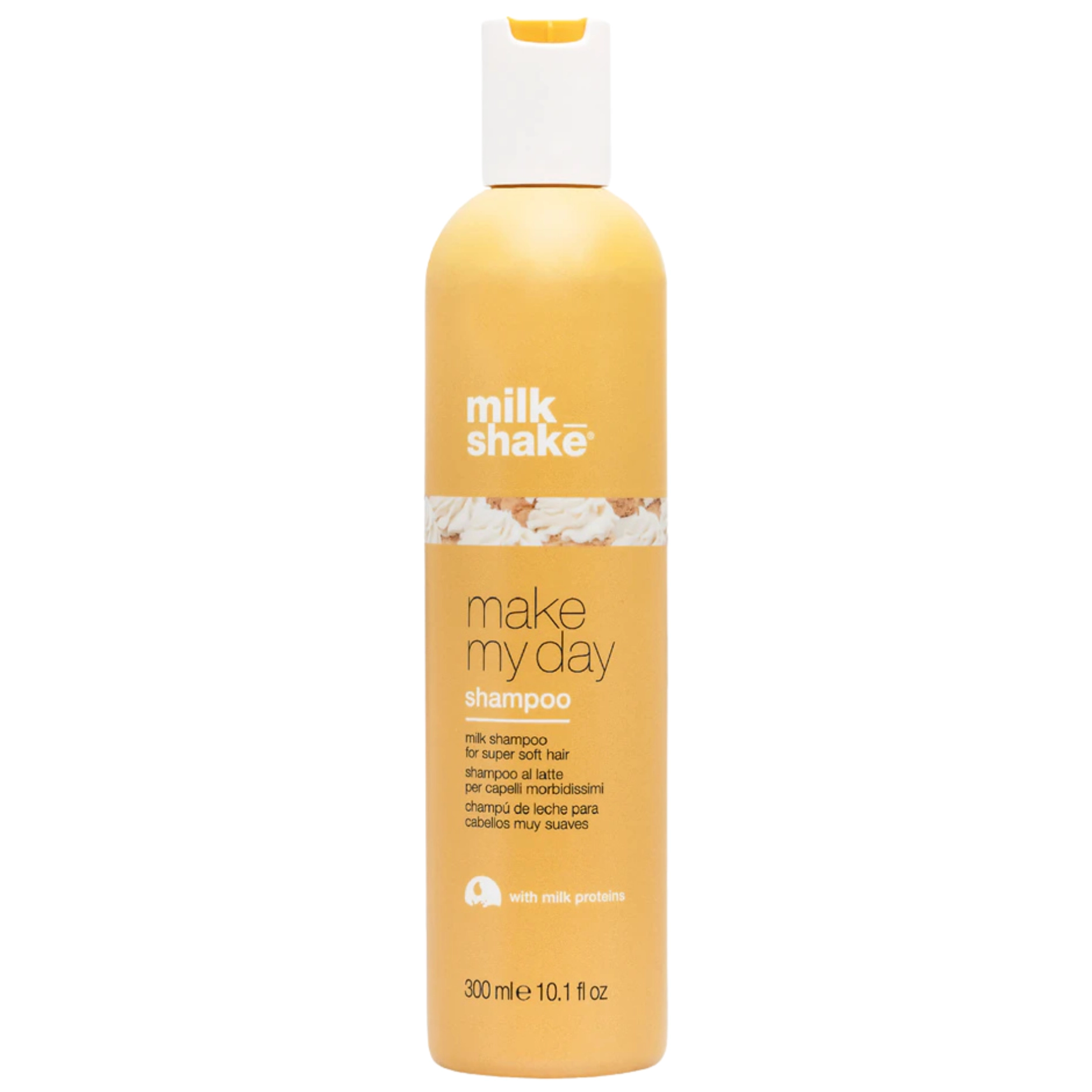 Шампунь Milk Shake Make My Day — це ідеальний засіб для глибокого очищення та живлення волосся. Він м'яко видаляє забруднення та надлишки себуму, підтримуючи водний і жировий баланс волосся, а також зберігає його природну вологу та колір. Завдяки молочним протеїнам і екстрактам ягід годжі, малини та полуниці, цей шампунь не лише живить, а й покращує здоров'я локонів, роблячи їх еластичними, шовковистими та сяючими.