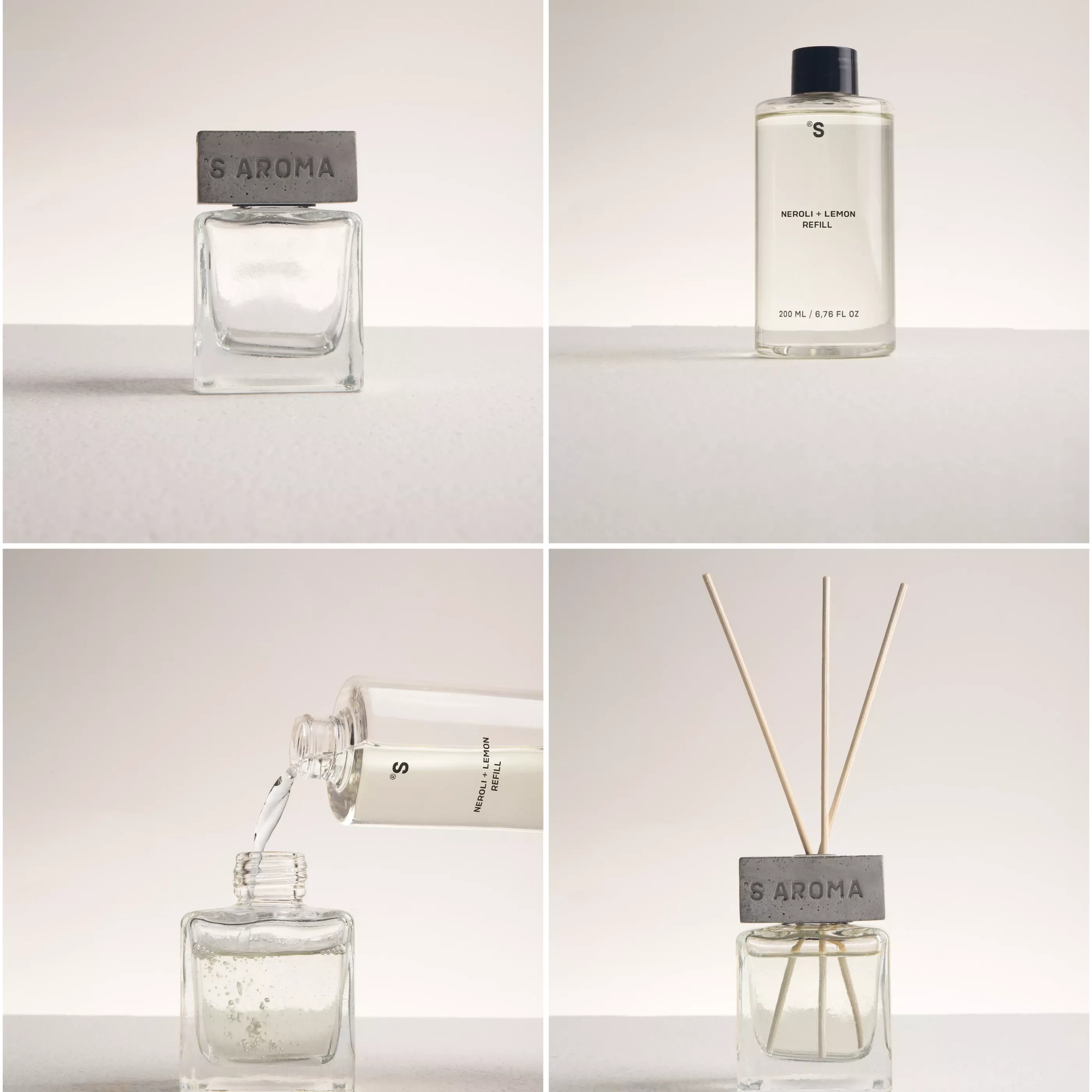 1. Наповнити очищену колбу попереднього дифузора Sister’s Aroma, у якому вже закінчилася ароматична рідина. Обʼєму рефіла вистачить на 2 рази.