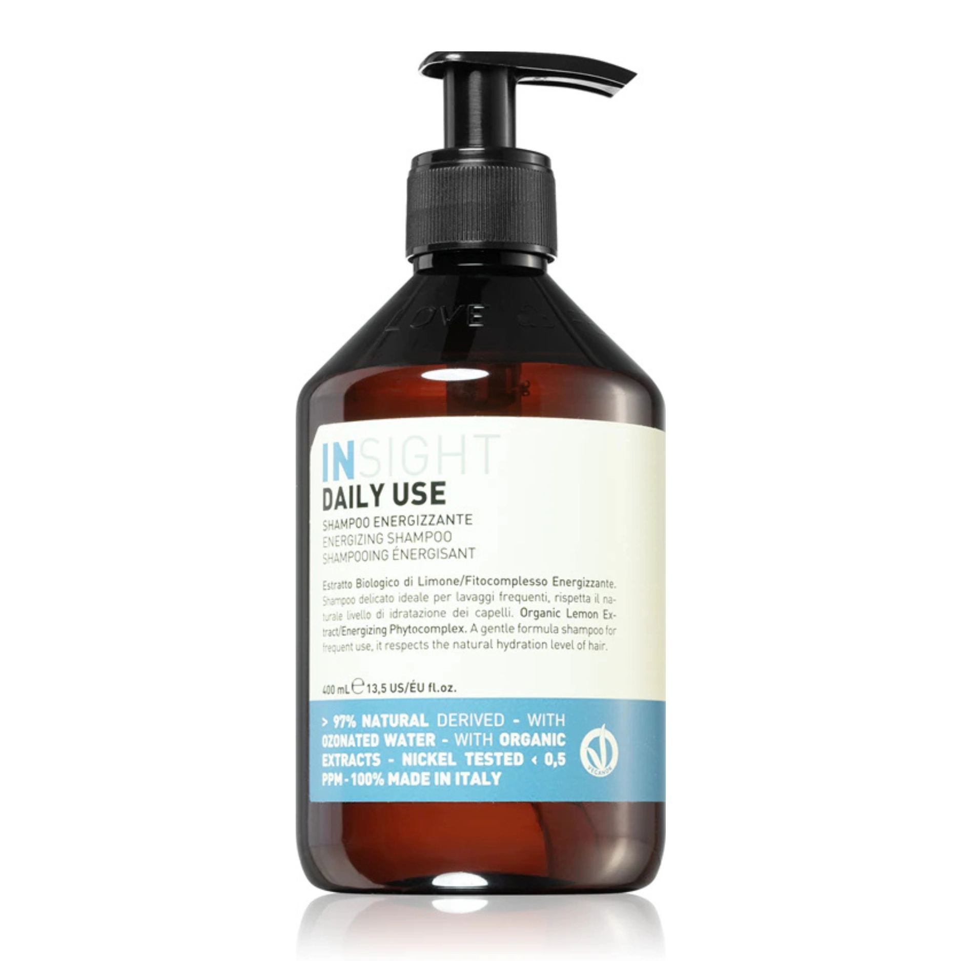 Шампунь INSIGHT Daily Use — це ідеальний вибір для щоденного очищення волосся та шкіри голови. Він ефективно усуває забруднення, надлишок жиру та залишки стайлінгових засобів, даруючи волоссю відчуття свіжості і легкості. Завдяки унікальній формулі, цей шампунь живить волосся, зміцнює його корені та відновлює природний блиск. Волосся набуває шовковистої текстури та об'єму, що робить його здоровим і енергійним. Прекрасно підходить для щоденного використання, готуючи волосся до наступних етапів догляду.
