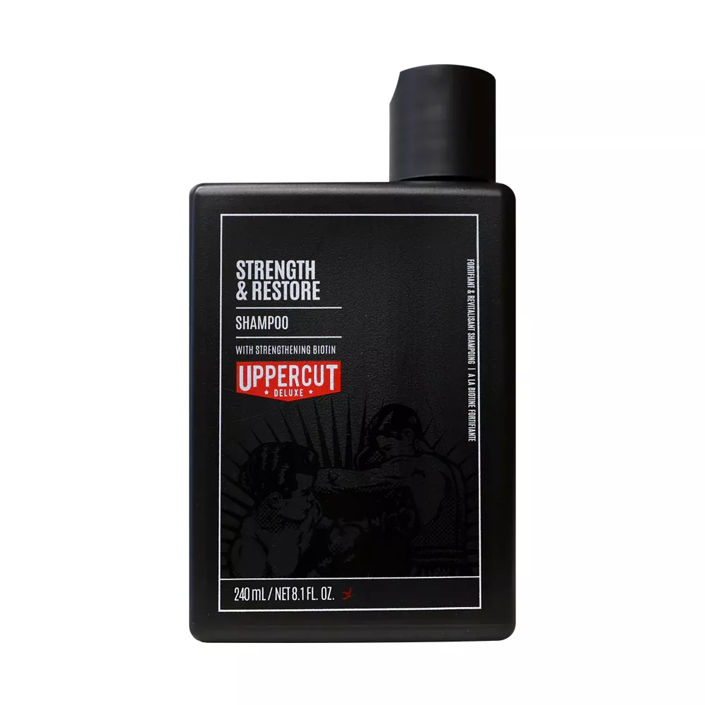 Попередньо намочіть голову, після чого нанесіть небагато шампуню. Ретельно розітріть по шкірі масажними рухами. Після отримання густої піни, змийте водою та скористайтеся кондиціонером Uppercut Deluxe Strength and Restore Conditioner.