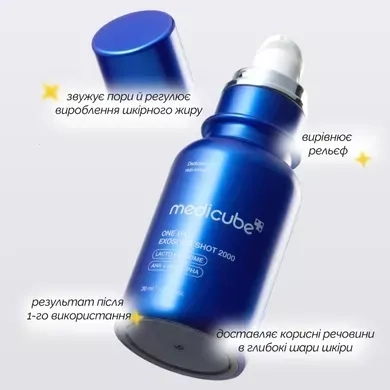 Ампульна сироватка Medicube One Day Exosome Shot Pore Ampoule 2000 містить 2000 ppm (0.2%) екзосом та може використовуватись на щоденній основі. Відчуття поколювання, свербежу, почервоніння, тепла, які можуть виникнути одразу після нанесення є нормальною реакцією, та швидко проходять.