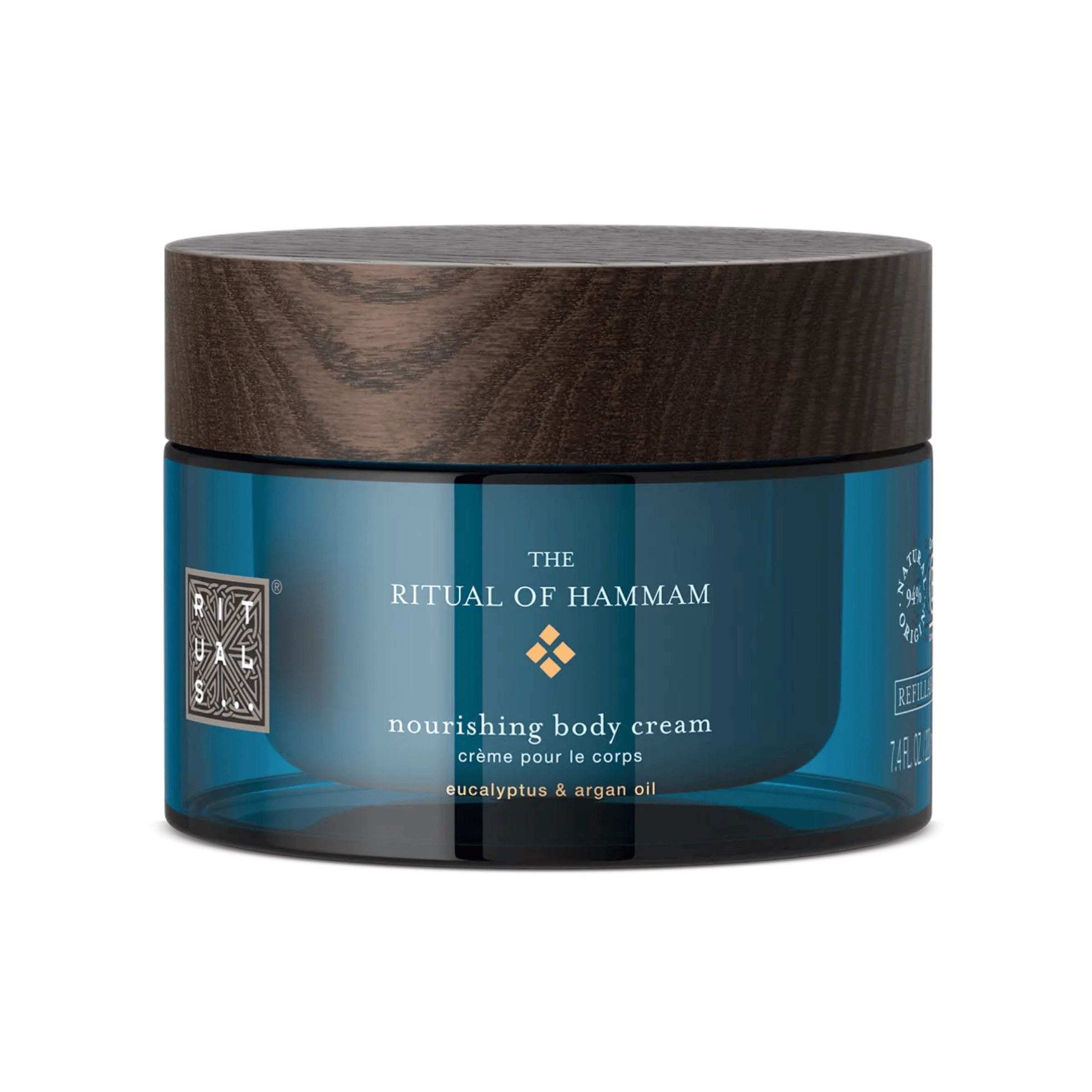 Оживіть та зволожіть свою шкіру з живильним кремом для тіла The Ritual of Hammam. Збагачений освіжаючим евкаліптом та антиоксидантним аргановим маслом, цей розкішний крем переносить вас у справжню парову лазню, не виходячи з дому. Його багатий склад на 94% з інгредієнтів природного походження живить та зволожує шкіру, залишаючи її м’якою, гладкою та з приємним ароматом. Відчуйте трансформуючу силу хамам-рутини з цим розкішним кремом для тіла.