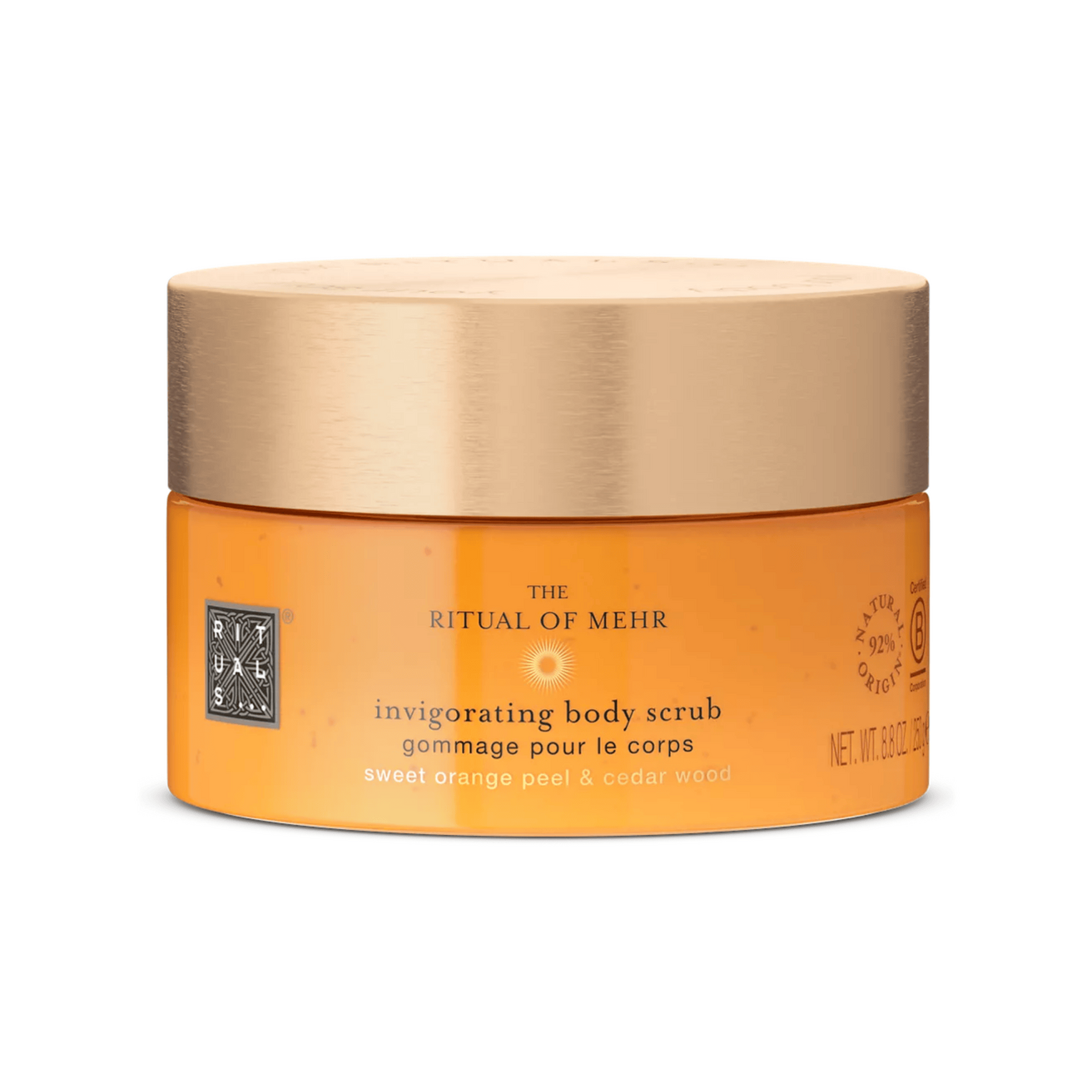 Відлущуйте шкіру, щоб вона виглядала більш гладкою і приємною на дотик, додаючи ще один етап розкоші у ваш догляд за тілом. Скраб для тіла The Ritual of Mehr – це розкішний поліруючий засіб, збагачений на 92,6% інгредієнтами природного походження. Багаті олії в його складі живлять, заспокоюють та енергізують шкіру. Цукор і потужні частинки цедри солодкого апельсина ніжно відлущують відмерлі клітини шкіри, залишаючи її шовковисто м’якою та сяючою.
