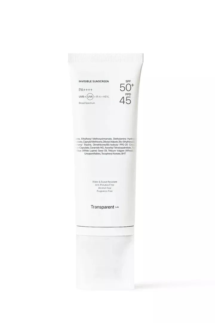 Transparent Lab Invisible Sunscreen SPF50+ - крем забезпечує високий захист від UVA, UVB, IR та HEVL променів. Підходить для всіх типів шкіри. Засіб залишає природний оксамитовий фініш без будь-яких жирних або білих слідів. Містить активні інгредієнти, які зміцнюють захисний бар’єр шкіри та допомагають запобігти пошкодженню сонцем.